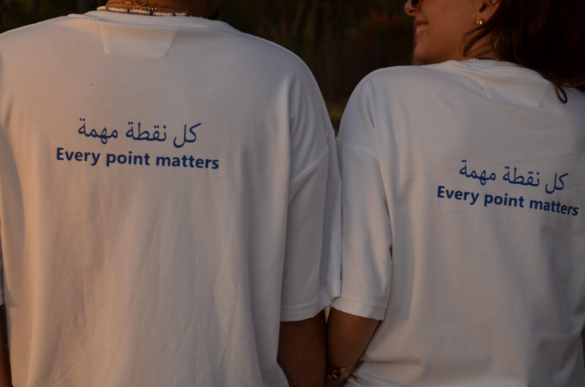 Clean white tee with bold bilingual text “Every point matters.” A minimal, comfortable, and meaningful streetwear essential.